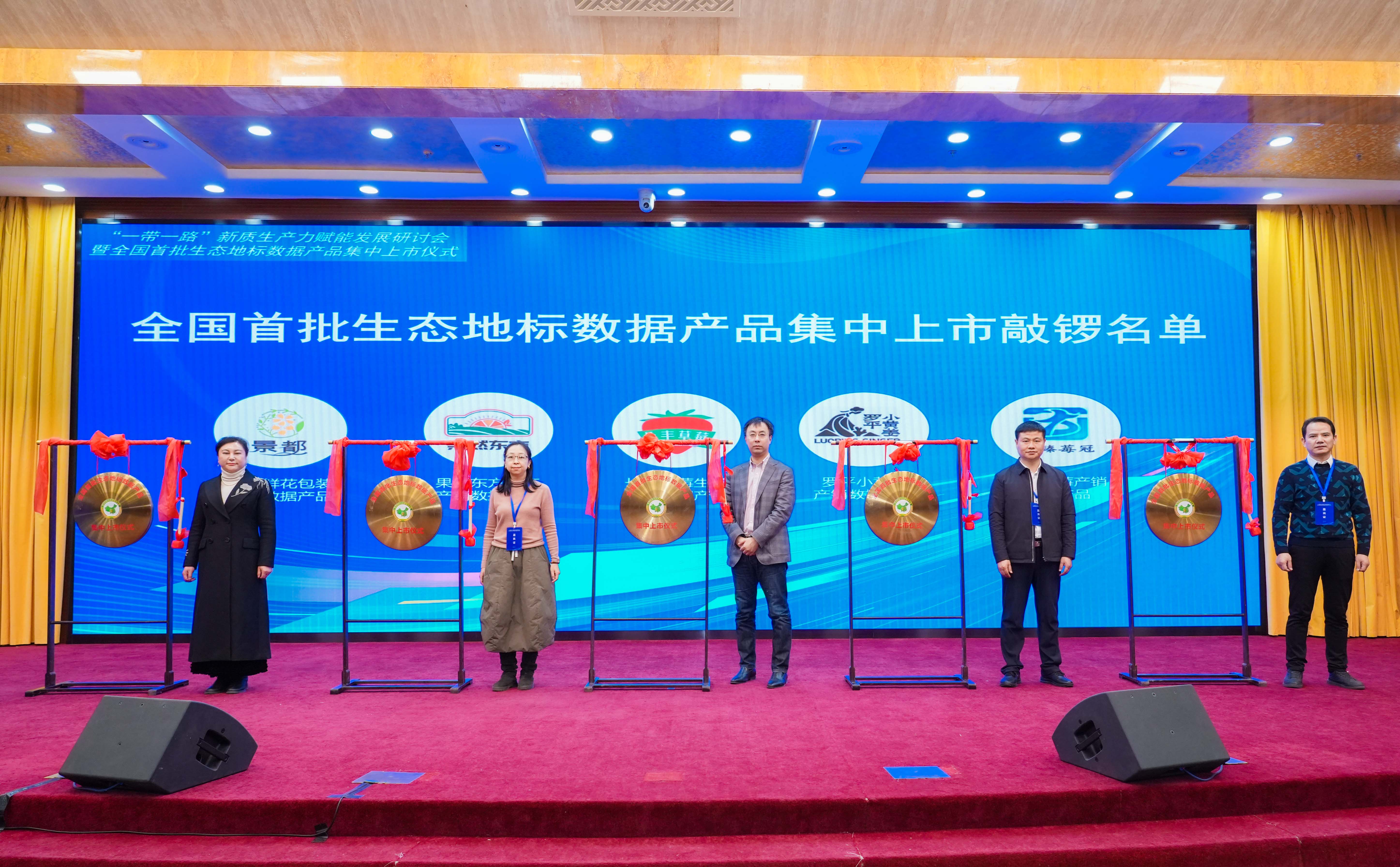 全国首批上市的“生态地标数据产品”名单在会上发布,分别是:景都鲜花包装销售数据产品、东方天麻产销数据产品、长丰草莓生长监测数据产品、罗平小黄姜产销数据产品、澄江蓝莓产销数据产品,随后举行了上市敲锣仪式和中国生态美食地标名都(新疆沙湾大盘鸡等)+数据产品上市启动仪式。会上,主办方为河北省隆化县颁发“中国生态肉牛名城”证书,为山东省冠县颁发“中国生态酥梨名县”证书。